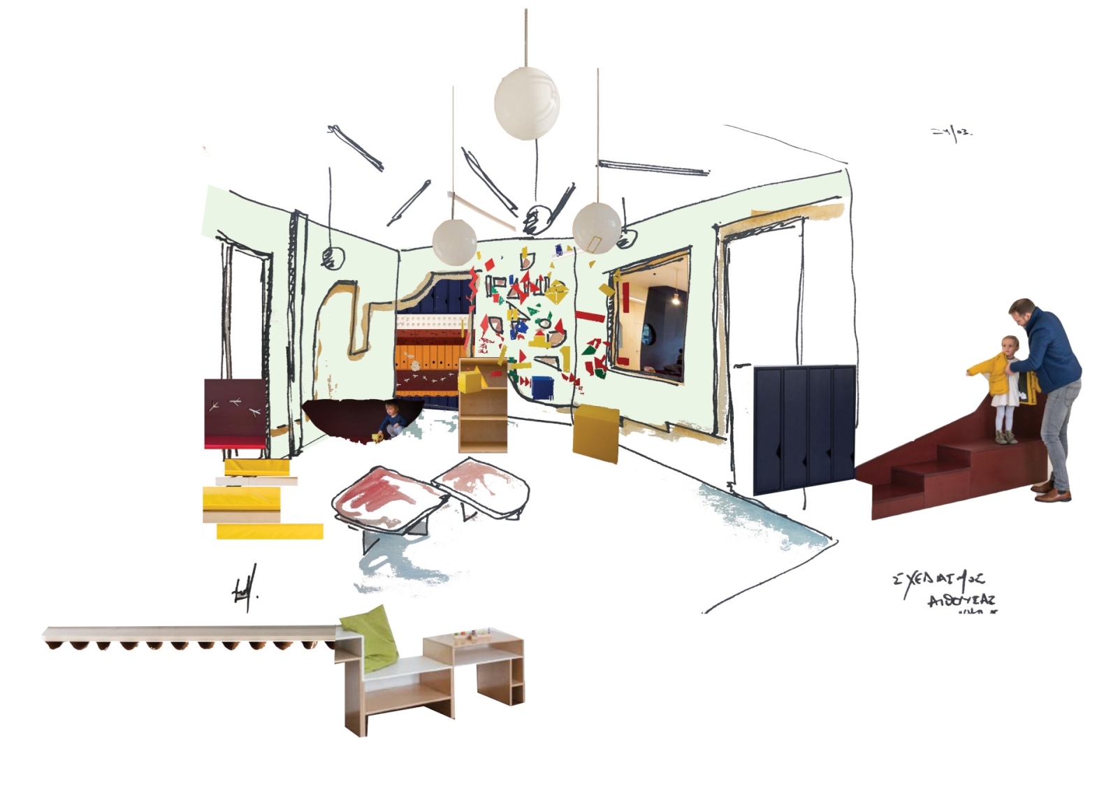 Το αρχιτεκτονικό γραφείο ανέλαβε τη μελέτη και κατασκευή νέων αιθουσών και κοινόχρηστων χώρων για ιδιωτικό νηπιαγωγείο στα προάστια της Θεσσαλονίκης.