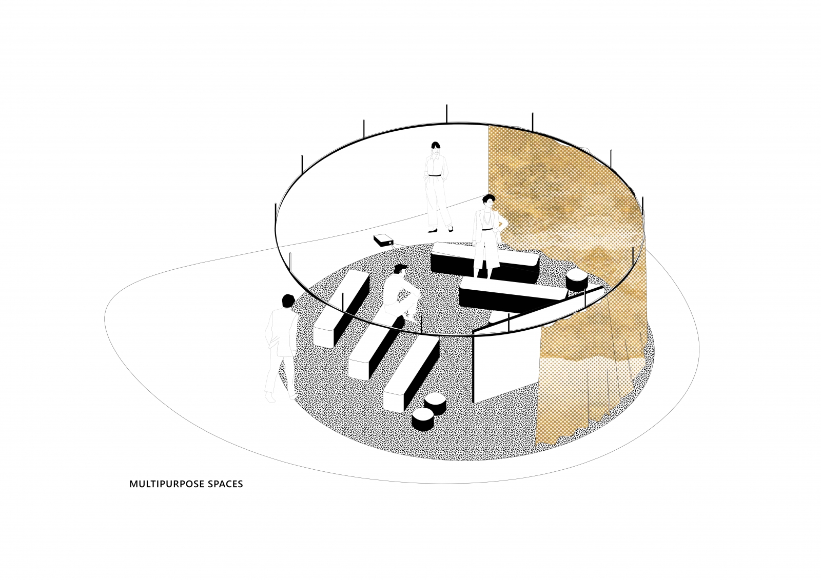 The design starts from the fluid geometry encountered on Berici Hills and on the water paths. The curvilinear imprint of the rivers and canals of the area, a natural choreography, becomes the main design element of the proposal.