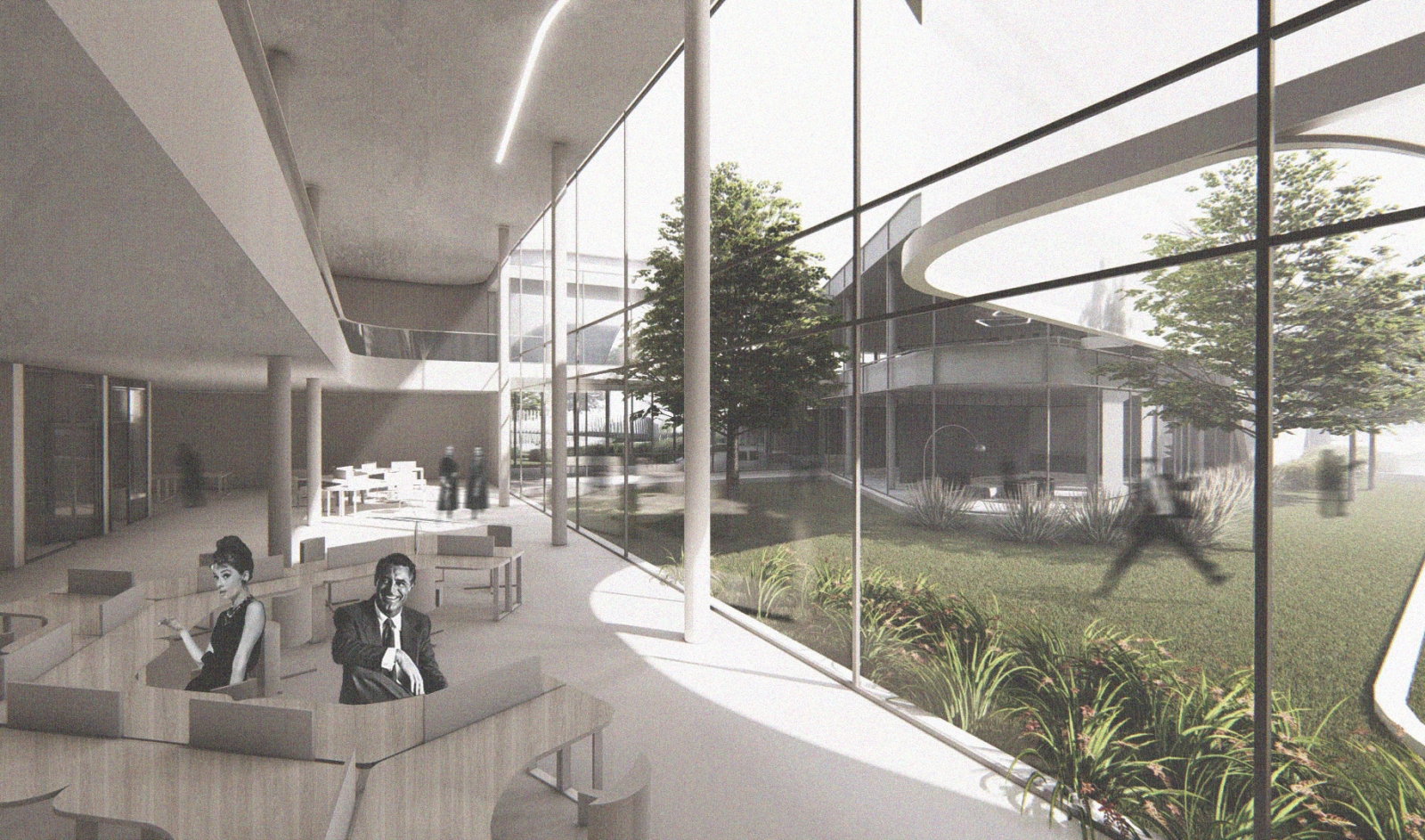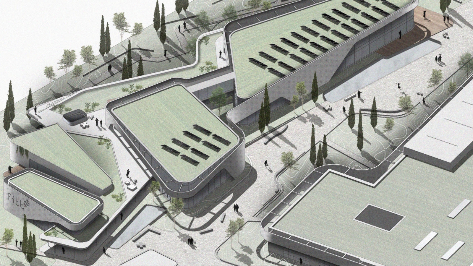 The New FITT Headquarters Building rises as a new point of reference on the transition between urban and natural, science and human. A thin line separates the industrial site from the surrounding nature of Berici Hills. Water is considered as the point of reference concerning the relationship between the company and the site. People are strongly connected to water. We survive thanks to it, we move the way it flows, we change routes on our way, we dance. Our life can be perceived as a choreography, as sequences of movements that generate forms and motion. The proposal attempts to connect, throughout the design of the new headquarters, water and thereby nature with people by introducing their similar chorographical imprint.